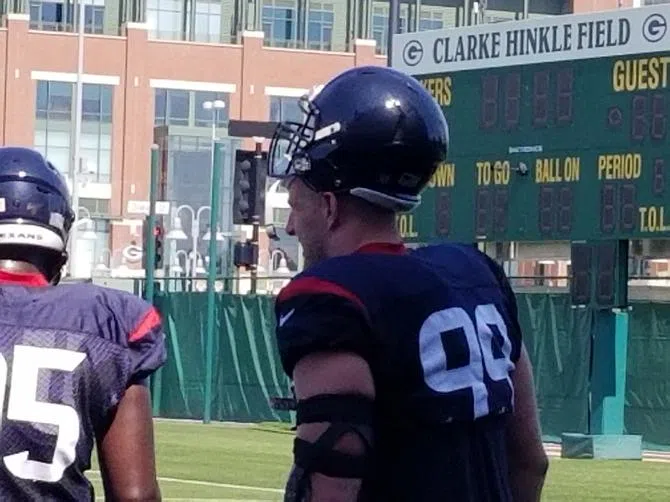 Two Houston players were particularly excited about practicing in Green Bay. One played his High School ball in town. Second round pick Max Scharping of Northern Illinois was a standout two way lineman at Green Bay Southwest High School. His parents were guests on the sideline at practice and Max said it was a great welcome home: