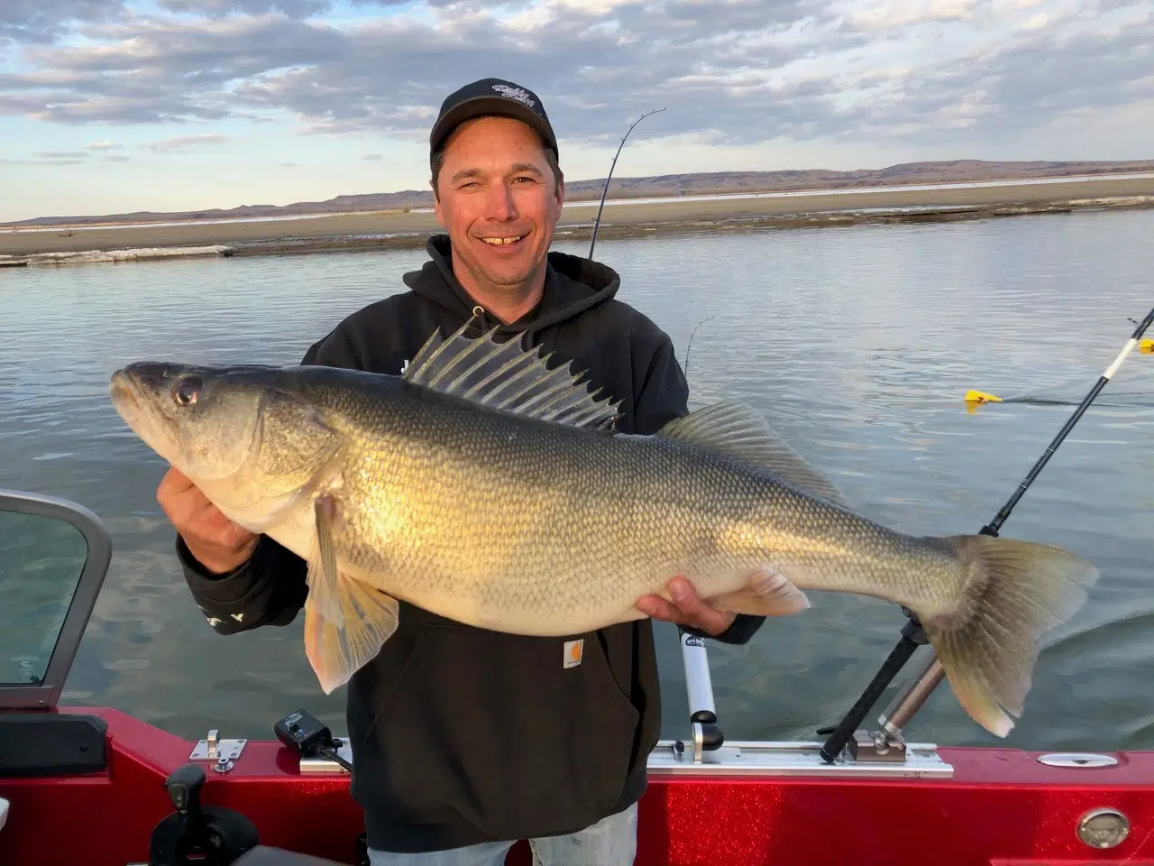 Shypkoski reeled in the 33-inch fish in the Eckroth Bottoms area of upper Lake Oahe.