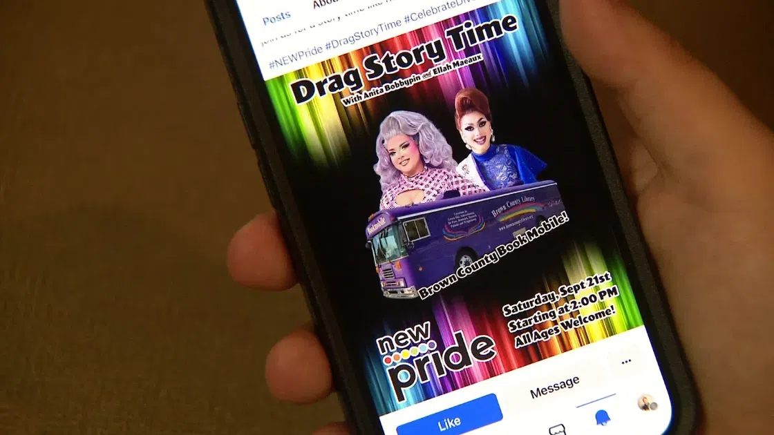 In a now-deleted Facebook post, N.E.W. Pride advertised a "Drag Story Time" event for September 21 featuring the Brown County Bookmobile. August 15, 2024. PC: Fox 11 Online