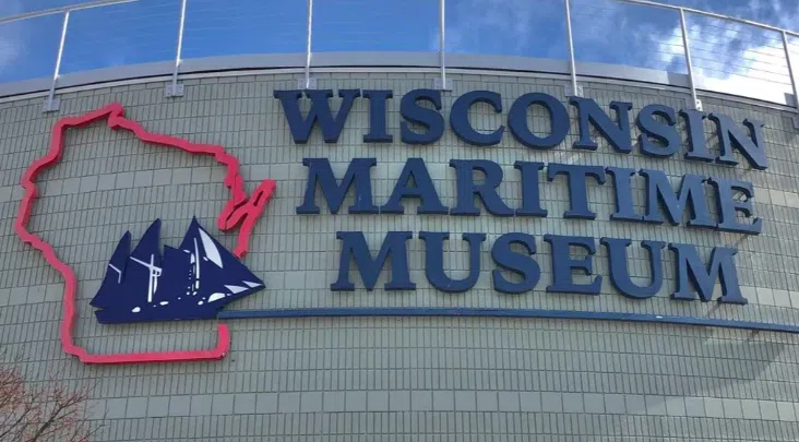 A Wisconsin Maritime Museum sign is seen outside the museum in Manitowoc March 18, 2021. PC: Fox 11 Online