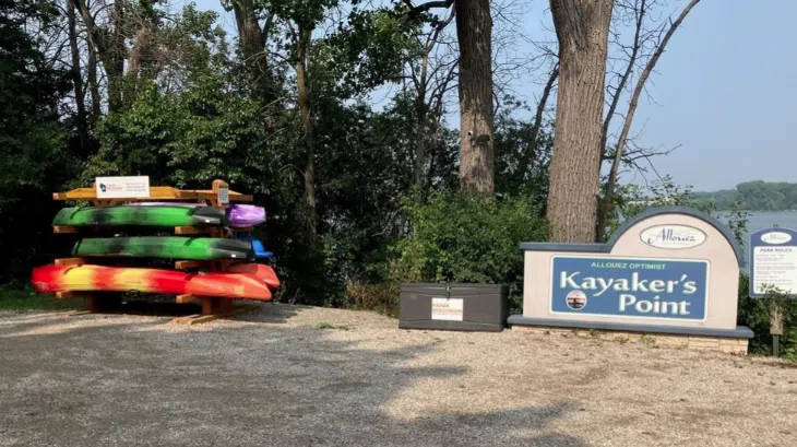 Optimist Kayaker's Point self-serve kayak rental in Allouez, July 2025. (Photo courtesy of the village of Allouez)